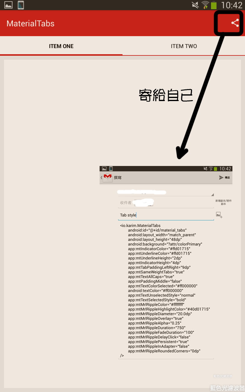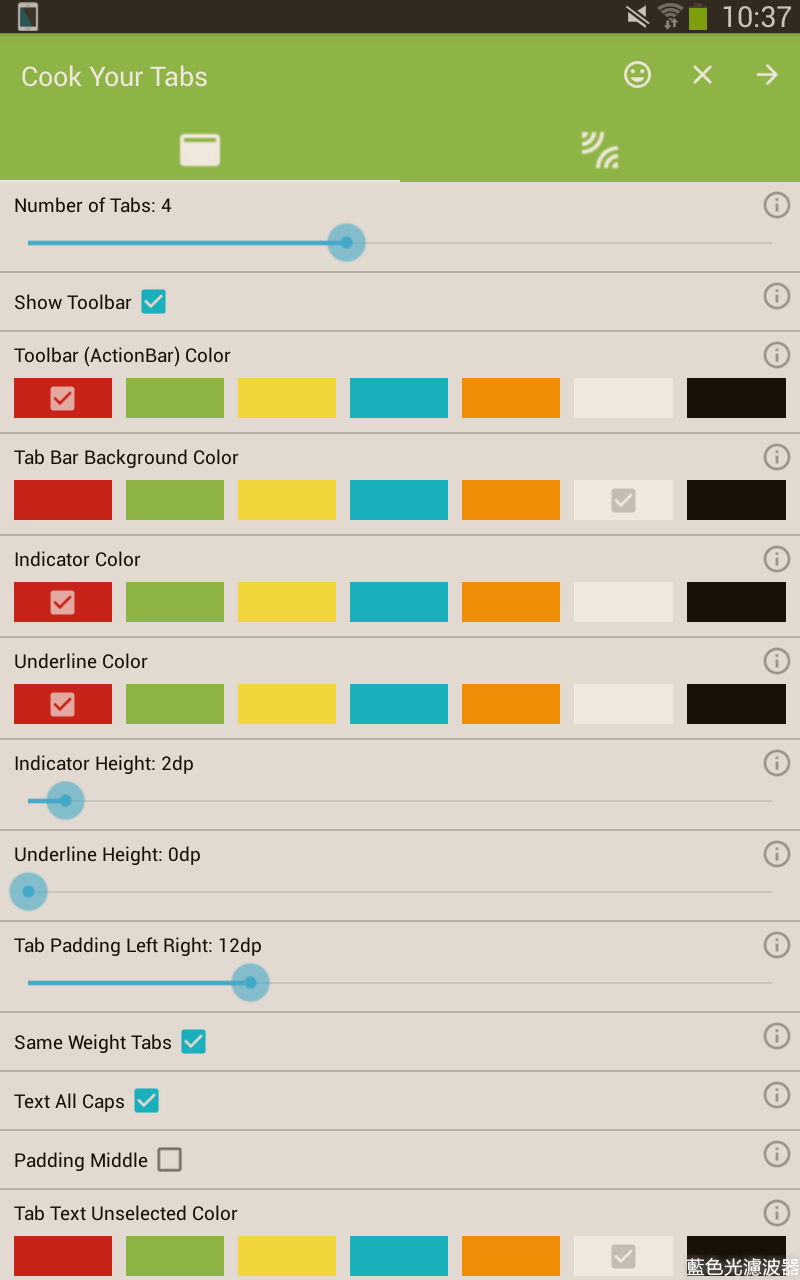 1 ) 下載它的App-Material Tabs Demo後,開啟App會看到以下畫面,準備客製化自己的Tab外觀。